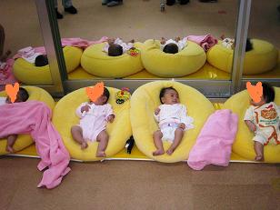 このクッションに寝かせるとかわいさ倍増。デレデレ。 で、寝かせてる間にママたちはたるみきった体をアフタービクスで締める、と。 実際は途中で赤ちゃんに泣かれたりして、結局抱っこしながらになったり。 オウはまだあんまり笑わないので、女の子に笑いかけられてもアホ面で見つめ返すだけ。 「そんなんじゃモテないぞ!」 PREV PAGE HOME NEXT PAGE