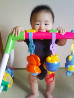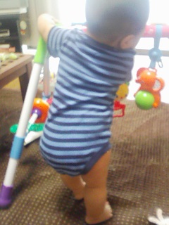 つかまり立ちがだいぶ安定してきて、