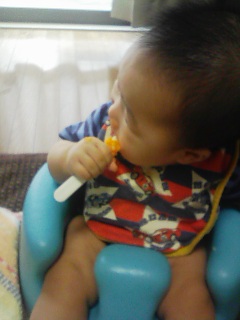 午前中しかやっていないので、 だんなは昼から出勤ということも多いから、 なかなか行けないんだよね。 あと、オウの機嫌とかわたしのメイクの出来とかで お出かけできないこともあります。ほほ。 今日も10組くらいの親子が来てたかな。 2ヶ月の赤ちゃんから3歳くらいの子まで色々。 オウを床に寝かせておもちゃを預けてちょっと放っておいてみたら、 大きい子が蹴ったボールがオウにぶつかったり、 歩いてる子がオウの手を踏んでいったり。(もちろんわざとじゃく) それでもオウは泣かずに手元のおもちゃに夢中。 保育園で育った子が逞しくなるっていうワケが判った気がする。 離乳食は2回に増やしましたがー、 準備・食べさせる・片付け(飛び散ったものを拭く)をやってたら あっという間に次のご飯の時間がやってくる感覚・・・。 これが3回になると・・・あわわ。