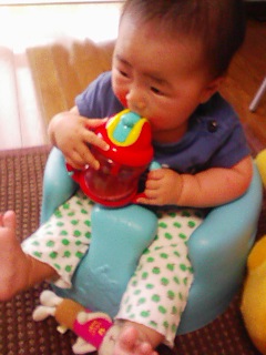 しばらく立っていられるようになりました。 ハイハイの練習をしているようで、 腰を上げたり下げたりがんばっている・・・が、その必死加減が見ていて とっても恥ずかしいんですけどどうにかならないものか・・・。 腰がカクカクしているんだもの。 早くハイハイを完成させて欲しいなぁ。(恥ずかしいから) ←「フンッフンッ」とがんばっているオウ 着ているのは新生児用の長肌着。 まだ着れます。パジャマになってます。 ------------------------------ ストローマグデビューしたけれど、 Nubyのはうまく吸えないらしく、 スパウトのマグで段階を踏んで練習しています。 スパウトでは飲めているみたい。 普通のストローはたまに成功。 Nubyのストローが難しいらしい。 スパウトのマグは日本未発売でお気に入り(わたしが)。 ------------------------------- 近所の子育て支援センターでは、 7月から小さいプールを開放してくれるというので、 水遊び用のオムツ買いました。ウッキウキー。 オムツですが、うちはLがキツキツ。 特別大きいほうでは全くないけど太ももがスゲェので、 太ももに合わせるとそろそろBIGサイズに変更。ドンダケェ~ ------------------------------- 離乳食は相変わらずテキトー。 出かける時は一回飛ばしちゃったり・・・。 量少ない?て時は小魚せんべい投入したり・・・。 時間がまちまちだったり・・・。 良くないってわかってはいるんですけどね・・・。 でも、うちの子は元気です。てへ。
