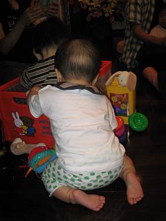 今までは部屋を借りてやっていたのだけど、 なにやら儲かっているのか教室建てちゃったらしい。 (中古物件をリフォームしたのかも) 赤ちゃん系雑誌に載って無料体験に参加希望者が殺到しているらしい。 雑誌の威力スゲェ。 新しい教室のお披露目という形で、 生徒を呼んでお酒や食べ物を振舞ってくれたのです。 新しい教室は授乳室、オムツ替えスペースがあって、 グランドピアノでのレッスンになるそうな。 うはー、オウのよだれで壊さないようにしなくては・・・。 0歳児もリズムに合わせて鍵盤叩くのよ。(わたしが操作して) 鍵盤と鍵盤の間によだれがタラーリ うん、ありえる・・・。 ちょっとオウより月齢が上の子がおもちゃ箱に入ってる。 それをうらやましそうに見ているオウ。 背中と後頭部のハゲが寂しげ。 このあと叩かれて泣いたよ。 ぷぷぷ。やり返せるほど強くなれー。 3つまとめて更新しました。しょこたんか!