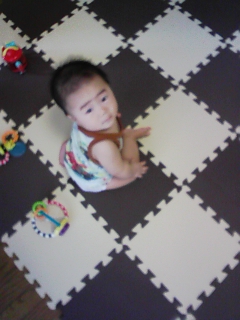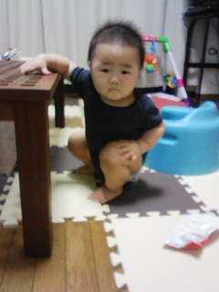 こりゃーいいよ。もっと早く買えば良かったなぁ。 あまりに快適なので買い足し決定! 見てのとおり、オウの眉毛がつながっています。 実際はつながっていないんだけど、 写真の撮り方によってヤバーイことになる! なぜかしらーと思っていたんだけど、 わかりました。わたしわかっちゃいました。 デコが出てるんです。 7月24日伝い歩き!(ガクガクヨロヨロしてたけど)