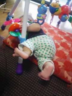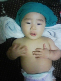 わたしはオウを「世界一カワイイ」と言いつつも、 顔の作りはいまいちであることはわかるから、 客観的に見られてるなと思うんだけど。 顔の作りがいまいちなところこそかわいく思えるってのもあるし。 ぶさかわぶさかわ。 スーパーで買い物をしてる時のこと。 だんながオウをスリングで抱っこして、 わたしがカートを押して買い物していたんだけど、 通りすがりのおばさんに「あらー、変わった抱っこしてるー」て言われたの。 スリングが珍しいんだろうなぁと納得。 その次の瞬間、だんなが・・・ 「今、かわいいって言われたー!」とホクホク顔。 『変わった抱っこ』→『かわいい子』に聞こえたらしい。 そして今日、お風呂前に服を脱がせながら写真を撮ったの。 (赤ちゃんは裸がカワユイ。アラーキー気分でよくこうやって撮ります。) この写真を見て一言。 「羽根が生えてる・・・」 ついに天使に見えてきたらしい。 いや、短肌着ですから。西松屋の。 ------------------------------------------- 最近、鼻の下を伸ばすのに凝っているらしい。 お出かけはつかれる・・・。