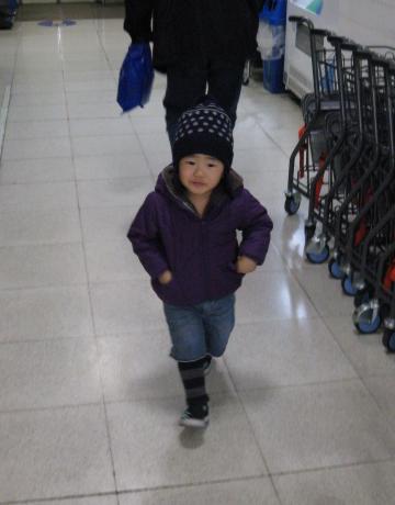 前回は母とわたしとオウ、3人だったから 夫にとっては初めてのコストコ。 予想通り楽しそうな夫。 いちいち大きくておもしろいもんなぁ。 オウはまぁまぁ大人しくバギーに乗っていてくれました。 バギーに乗ったまま靴を脱いでわたしが拾って履かせてっていう なにこのシンデレラ?という場面もあったけど。 バギーからの低い目線では大抵の商品は視界に入らないから 大人しくしてくれていたのかも。 でも危ない一幕もありました。 商品を載せている台が高さ調節できる台で、 穴が何個もあいていて、穴に金具を差し込んで 高さを調節できるタイプでした。 ジムの負荷調節でも良く見かけるアレ。 立ち止まってパンを選んで、ゆっくり歩き始めたら 「ぁぁぁ・・・」というオウの声。 え?と思ってオウを見ると、その穴に指を入れて抜けないままに! オウの腕はぐいーんと伸びていて指だけ穴に置いてきぼり状態。 「ひやぁぁ」と叫んでしまった・・・。 急いで抜こうとしたけどわたしも焦っているからか、なかなか抜けなくて。 でも無事抜けてホッ。 わたしが勢い良く歩き出していたらオウの指折れちゃってたと思う。 想像するだけで恐ろしいよ。 公園の遊具でもああいう穴に子供が指を入れて切断、とか 一時期よくニュースで聞いたなぁ。 ああいう穴に指いれたくなっちゃうんだねぇ。 気をつけて見ていないとなぁ、と思いました。コワスギ。 まぁそんなこともありましたが、お買い物できました。 今回もバターチキンカレーとディナーロールは買いました。 あとはパイプユニッシュとチーズケーキと コーラとスパークリングワインとステーキ肉と鶏肉。 チーズケーキは激ウマーでした。濃厚! スパークリングワインはわたしが試飲して美味しかったから! 鶏肉は2キロで788円。安すぎ~。から揚げにしよう! 一個一個大きい分、支払い金額は大きくなってしまうけど、 やっぱりお得だわ。近所にコストコほしい! 駐車場に戻る間にお腹がすいてしまったオウは、 買ったばかりのディナーロールを頬張る。 アウトレットの一角です。 なんかこの写真、噺家さんみたい・・・ コストコの前に行ったアウトレットではほどよくお買い物。 スウェードのノーカラーコートに魅せられてしまい、 夫も「買っちゃえば」と言ってくれたけど我慢した! すげー!わたしすげー! 店内どれでも2点で5900円というタイムセール(?)に遭遇し スプリングコートとパンプス買っちゃった。 Tシャツ2枚で5900円なら買わないけど、得した~。 仕事しているとなかなか一点豪華主義というわけにはいかなくて いくつも欲しくなっちゃうから助かった。 靴もすぐ磨り減っちゃうんだよね・・・。 夫もNIKEで何か(なんていうアイテムかわからない)買ってたしご満悦。 ここのアウトレットはオウ向けの店がないので オウにはがまんしてもらったよ。 ストンプスタンプもあるけどあんまり良いのは置いていないみたい。 あー、でも画像で履いている靴は前にここのストンプスタンプで買ったよ。 いっちょまえにラコステ。 後ろのベロ?がないから保育園ではNGだったけど、 オウのお気に入りなのです。 さて、次はわたしの厄除け。 はやいとこ行かないと悪いことが起きそうで怖い!